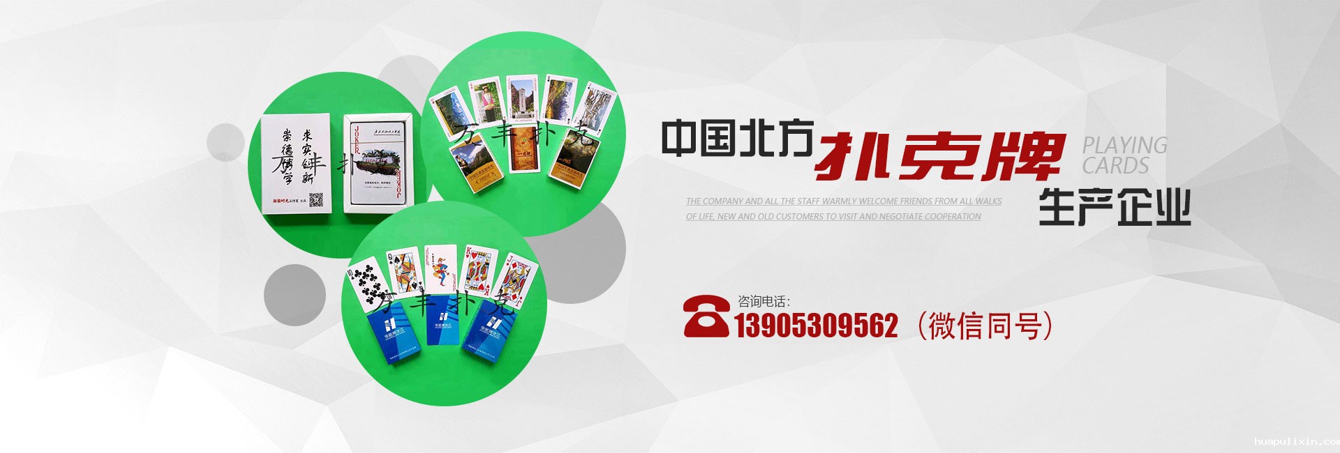 我公司是中国北方扑克牌生产企业。主要出口到:美国、法国、德国、意大利、西班牙、荷兰、加拿大、俄罗斯、越南、孟加拉等国家和地区。国内销售的扑克有:广告类、礼品类、卡通类、食品饮料类、酒水烟草类、银行保险类、房产装饰类、家电通信类、旅游风光类、医疗卫生类、科学教育类、安全宣传类、超市服装类、汽车机械类、体育文化类、建设农资类、农化类等18个种类2000多个品种。